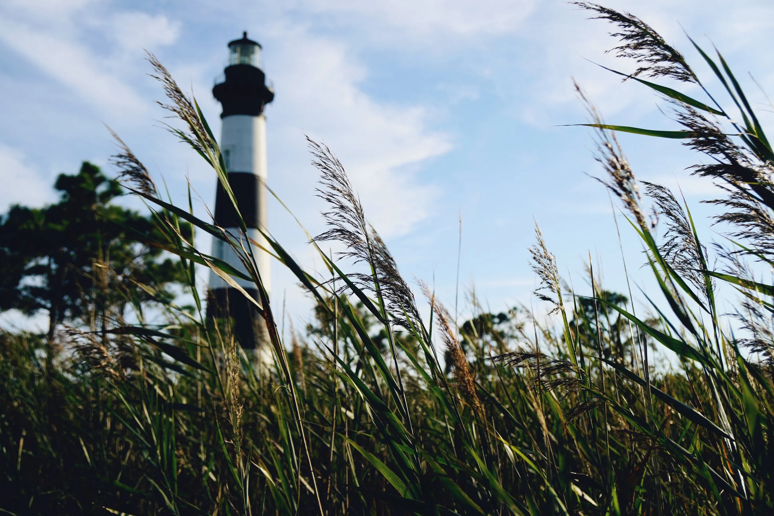I spent Labor Day holiday this year with friends in Outer Banks, North Carolina. Outer Banks, also know as OBX, is a string of islands on the north east coast of the state. It is about a six hour drive from D.C. and a welcome getaway for a short vacation. It was my first time to this sliver of land on the coast and first time seeing these beautiful, quaint lighthouses. There are a few stretched along the length of OBX, this one with its signature black and white horizontal lines is Bodie Island Lighthouse. Apparently going into the surrounding tall grass is ill-advised as there are snakes and ticks abound this time of year, but with risk comes reward.