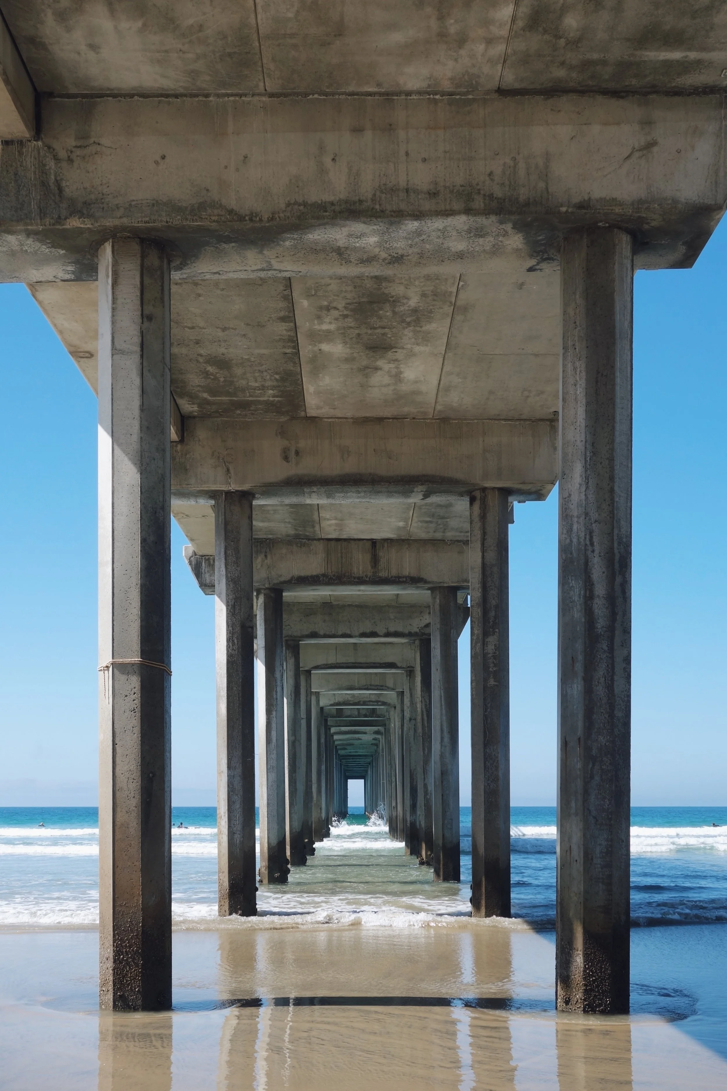 Pictured here is a pier on Scripps Beach that is located next to the UCSD Scripps Institution of Oceanography campus in north La Jolla. The pier is closed to the public, but the beach is not. Scripps Beach is quieter than its southern sister La Jolla Shores so if you are looking for a beach that is more peaceful and one that locals retreat to, Scripps is a good place to go.