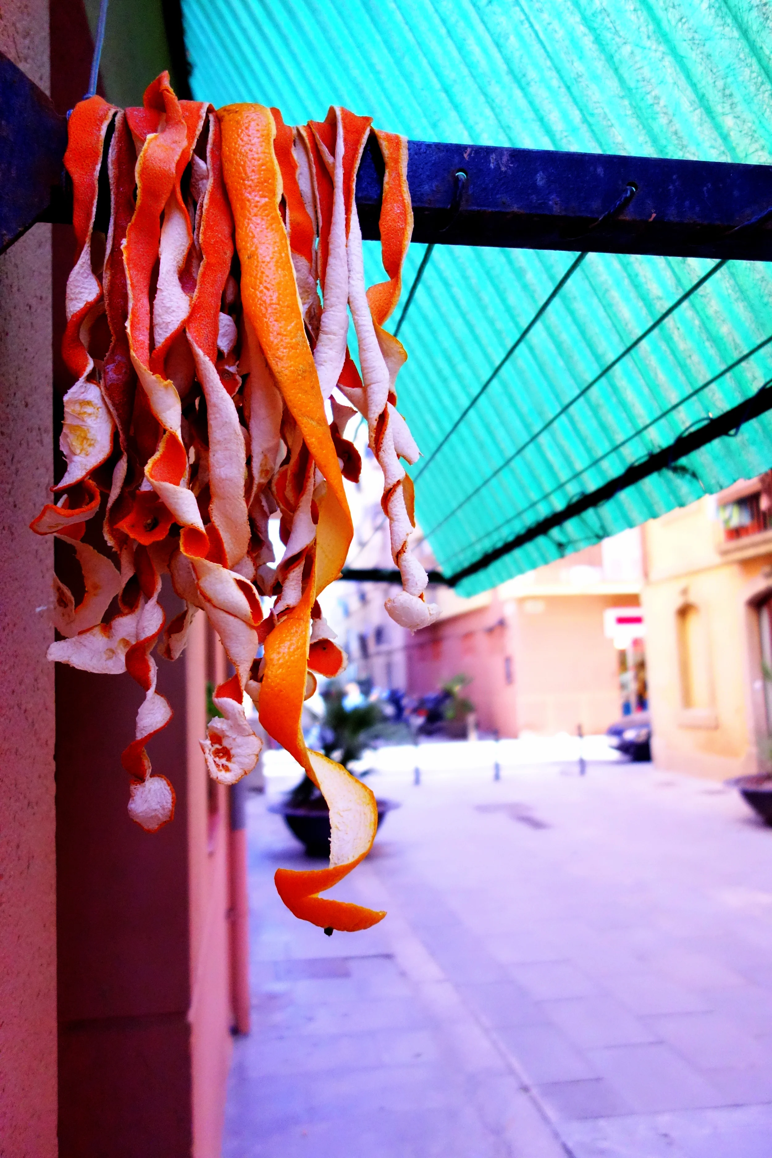 My friend Madalene and I were walking to La Barceloneta for a drink by the beach when I saw these orange peels drying outside an apartment. My first thought was, 'How beautiful'; my second thought, 'I really have to figure out how to peel an orange in one piece'.