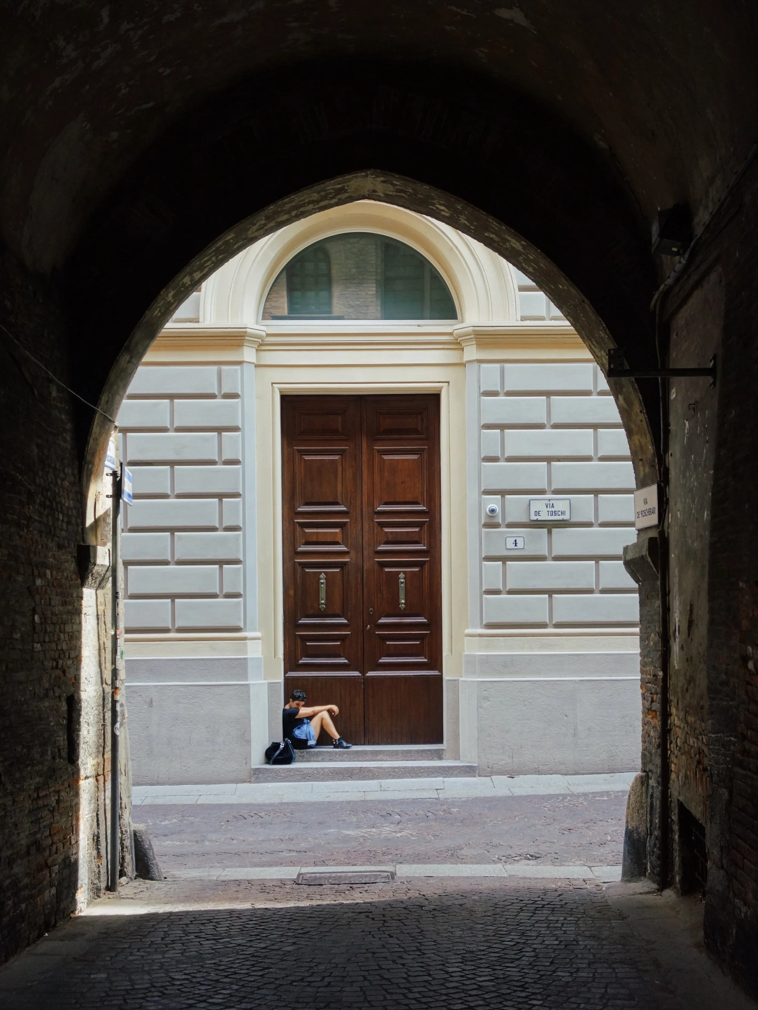 I made some good friends living in Milan and Agnès is one of them. A talented linguist and writer, Agnès and I were colleagues at the USA Pavilion during Expo. She studied in Bologna and wanted to show me the city she once called home. We went on ferragosto so it was quiet as most people vacate cities for the seaside during this time. This moment highlights just how quiet the city was. These streets would typically be bustling with students and residents, however since it was a slow day in August, I was able to spot Agnès resting yards away and get a quick candid of her.